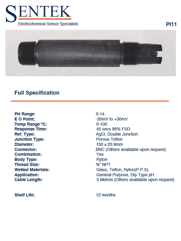 PI11 vízbe merülő ryton anyagú ipari pH elektród